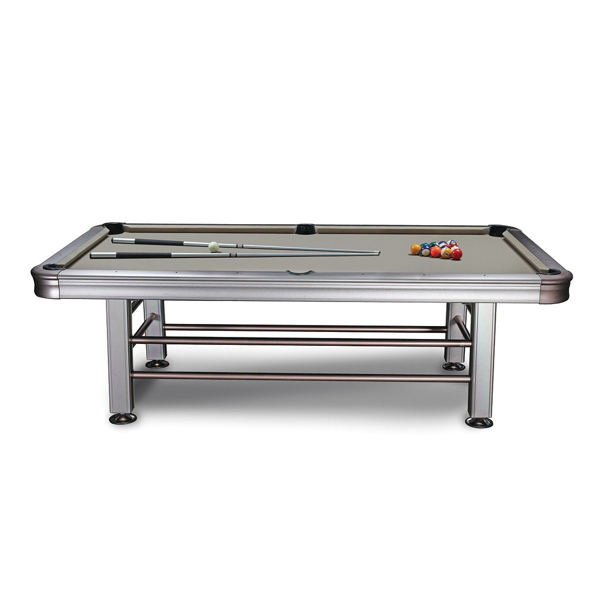 Forget tight indoor spaces – take advantage of the wide open outdoors for your pool table. Galvanized Aluminum construction, Waterproof Pearl Bed, and Taclon Cloth allow for exposure to the elements: